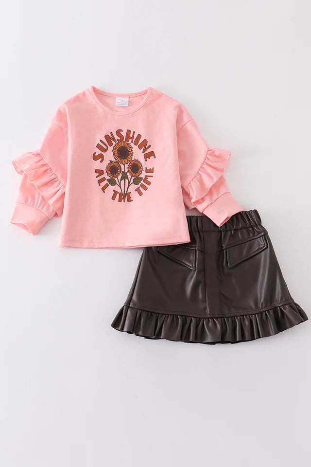 This adorable 2 piece outfit is perfect for your little. The faux leather skirt and sweet pink top will be one of her favorites.