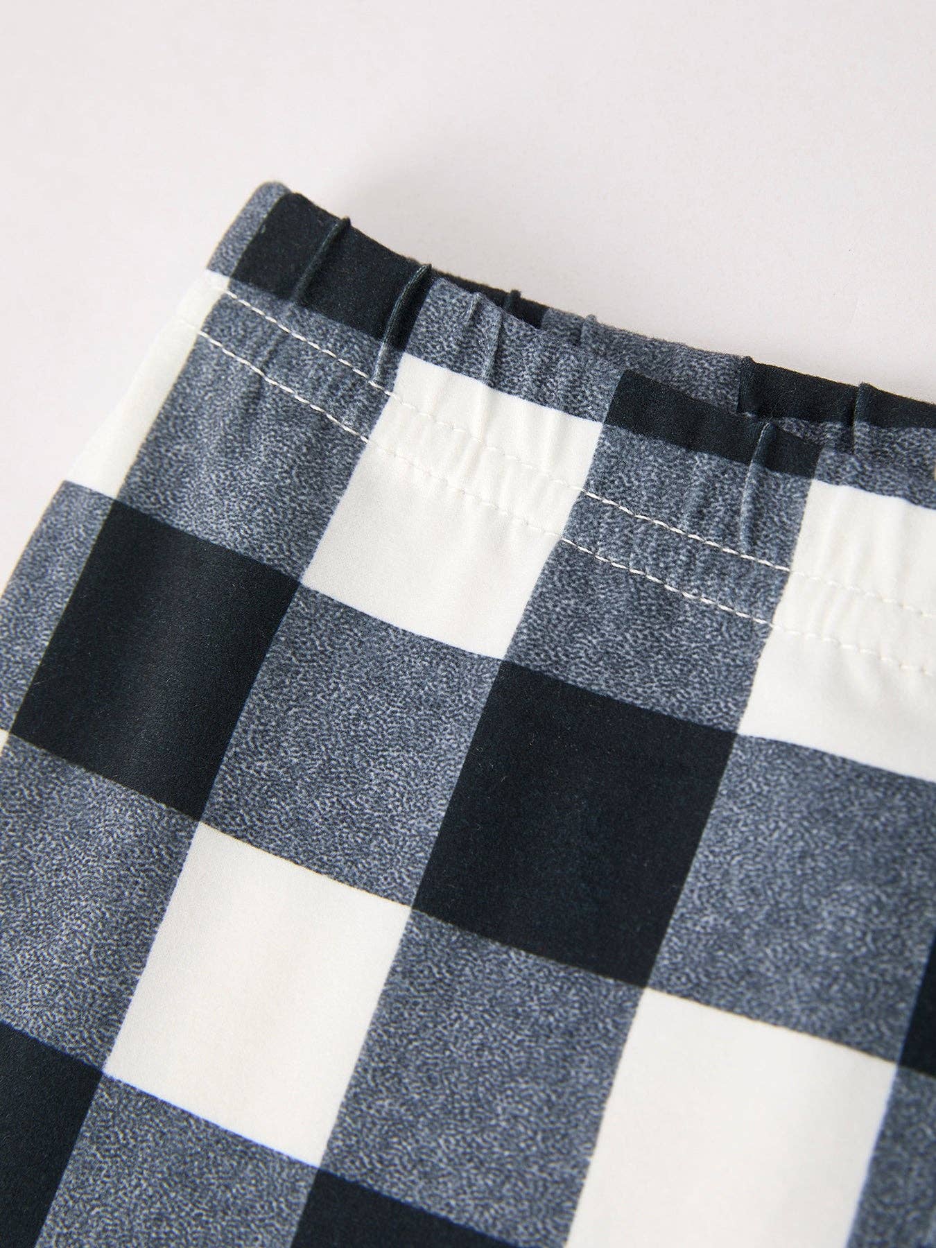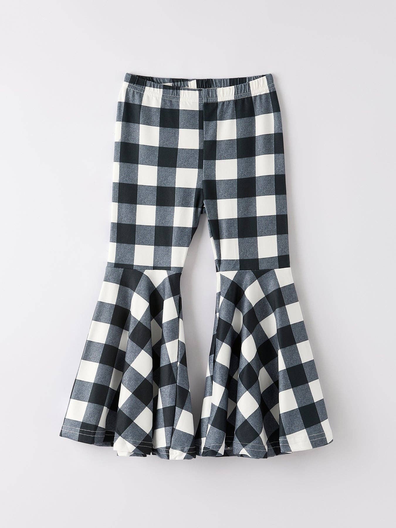 These black and white checked bell-bottom pants offer a stylish and comfortable fit for girls. The classic check pattern adds a timeless touch, while the bell-bottom design provides a trendy silhouette that moves with ease.